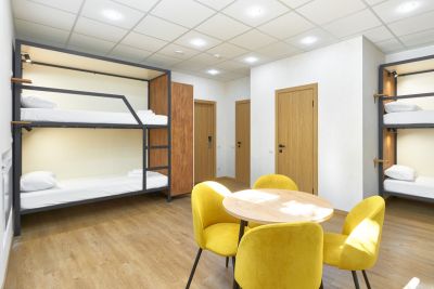 Капсульный хостел в Казани, рядом с парком Победы. Капсулы для сна оборудованы вентиляторами для регулировки микроклимата, специальной подсветкой, телевизорами. Коворкинг-зона, оборудованная кухня, пространство для игр.